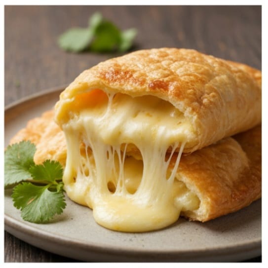 Ein Bissen alpiner Magie im Teigmantel: Unsere GOLD Raclette Empanada aus Gstaad schmilzt warm und cremig – wie ein Kaminfeuer in einer Winterhütte. Mit ihrem unverwechselbaren goldenen Käse, der eure Bergseele umarmt, ist sie ein kleiner Ferienmoment in jedem Bissen.